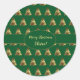 Pegatina Redonda Patrón de árbol de Navidad Verde y Elegante dorado