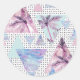 Pegatina Redonda Patrón de árbol de palma rosa y azul