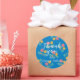 Blue Daisy Vintage Bouquet Pattern Classic Round Pegatina. Diseño de patrones de flores dulces, femeninas, onduladas y elegantes por Dreaming Cocoon. Personalice al pegatina con sus nombres. Puedes personalizar el texto 1 - Gracias y el texto 2 - Amor, con tus propias palabras. Este bonito floral de agradecimiento pegatina es una idea perfecta para un favor de fiesta, regalo/paquete personalizado y un sello envuelto.