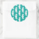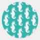 Pegatina Redonda Patrón de caballitos de mar verde azulados 1