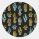 Pegatina Redonda Patrón de cactus de grunge oscuro