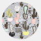Pegatina Redonda Patrón de cactus dibujado a mano con textura