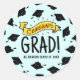 ¡Celebra cualquier graduado con este divertido diseño personalizado! Presenta "Felicitaciones Grad" con una pancarta de oro ondeando rodeada de gorras negras de graduación tiradas al aire. Personalice este pegatina único y decorativo con el nombre del graduado y el año de clase. El fondo azul pastel se puede cambiar a cualquier color que prefieras. ¡Es el pegatina perfecto para graduados de secundaria, graduados universitarios o cualquier graduación! ¡Celebren su logro con un pegatina personalizado de la clase!