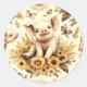 Pegatina Redonda Patrón de cerdos de girasol cúbico