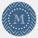 Pegatina Redonda Patrón de cheurón azul y blanco de la marina, tu m