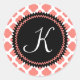 Pegatina Redonda Patrón de cuatrefoil rosado-negro monogramado