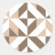 Pegatina Redonda Patrón de cubo geométrico beige marrón
