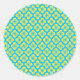 Pegatina Redonda Patrón de flores en amarillo y turquesa
