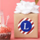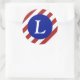 Pegatina Redonda Patrón de franjas rojas y blancas + Círculo azul r