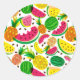 Pegatina Redonda Patrón de frutas tropicales rojas y amarillas