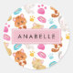 Pegatina Redonda Patrón De Gatos, Gatos Cutos, Kitty, Tu Nombre