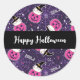 Pegatina Redonda Patrón de Halloween de gatos y calabazas