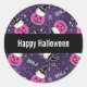 Pegatina Redonda Patrón de Halloween de gatos y calabazas