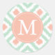 Pegatina Redonda Patrón de ikat de diamantes de mimbre monogramados
