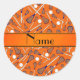 Pegatina Redonda Patrón de lacrosse naranja de nombre personalizado