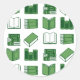 Pegatina Redonda Patrón de lectura y escritura del libro verde