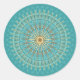 Pegatina Redonda Patrón de Mandala dorada turquesa
