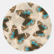Pegatina Redonda Patrón de mariposa azul Pansy en blanco roto
