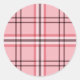 Pegatina Redonda Patrón de moda a cuadros rosa y gris chic fiesta