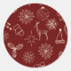 Pegatina Redonda Patrón de Navidad simple moderno festivo rojo lind