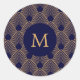 Pegatina Redonda Patrón de oro y azul Art Decó de Monograma