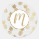 Un patrón tropical de piñas recubiertas de una textura dorada brillante. Las piñas se colocan sobre un fondo gris muy claro. Están decoradas con una técnica de mosaico para un aspecto moderno. Esta impronta resalta todos los sentidos de un complejo tropical, pero el sutil dorado le da un toque de elegancia y moda.