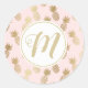 Pegatina Redonda Patrón de piña dorada y monograma