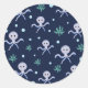 Pegatina Redonda Patrón de pulpo bajo el mar