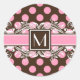 Patrón de puntos de polka rosa y marrón con un monograma personalizado y elegante borde giratorio blanco floreciente.