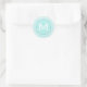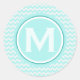 Pegatina Redonda Patrón de zigzag turquesa de luz monogramada