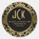 Pegatina Redonda Patrón elegante de damasquinados florales en negro