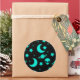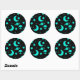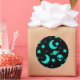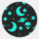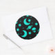 Pegatina Redonda Patrón extraño turquesa con estrellas y lunas