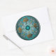 Bonito, colorido y vibrante pegatina de patrón floral medieval en plata, cobre, verde, azul y blanco.