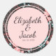 Pegatina Redonda Patrón floral rosa y Verde azulado oscuro