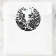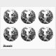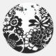 Pegatina Redonda Patrón gráfico de jardín floral blanco y negro