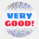 Este diseño pegatina presenta un patrón abstracto de cuadrado o tejas de colores como gris, violeta, beige y azul. También muestra el motivador dicho "¡MUY BUENO!" en texto de color azul y rojo. Pegatinas como estos podrían ser usados tal vez por profesores, educadores o tutores para reconocer y motivar a un estudiante que ha hecho muy buen trabajo en un examen, prueba, trabajo, proyecto, o algún otro trabajo escolar o académico. [~Z0000118]