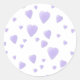 Pegatina Redonda Patrón Lilac claro y Corazones de amor blanco.