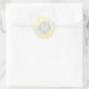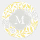 Pegatina Redonda Patrón Monogramado de Damasco Floral Gris Amarillo