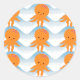 Pegatina Redonda Patrón Octopus Y Ondas Azules naranjas