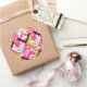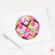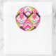 Pegatina Redonda Patrón Zig Zag Rosa Dibujado A Mano