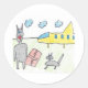Pegatina Redonda Patty El Gato Negro recibe a un visitante