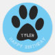 Pegatina Redonda Paw Print Blue Happy Birday Name
