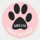 Pegatina Redonda Paw Print Pink Happy Birthday Sticker with Name