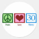 Pegatina Redonda Paz Amor 30.º Fiesta de cumpleaños