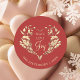 Pegatina Redonda Paz Amor Alegría Navidad Roja Dorada