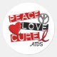 Apoyar a todas las personas que luchan contra el SIDA / VIH y promover la conciencia con camisetas, regalos y vestimentas de "PEACE LOVE CURE" con texto de etiquetas, símbolo de la paz, corazón rojo y cinta roja. Ideal para el Mes de Concienciación sobre el SIDA, Día Mundial del SIDA, Caminatas de Concienciación sobre el SIDA, ¡o CUALQUIER momento intermedio! ¿ASÍ?