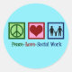 El trabajo social de Peace Love. Un lindo regalo de Navidades de trabajadores sociales con una familia que se toma de la mano junto a un signo de paz y corazón. Un bonito diseño para los servicios sociales.