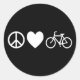 Pegatina Redonda Paz Amor y Bicicletas