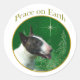 Paz en la Tierra. Muestra tu razón para la temporada con tu Bull Terrier en este diseño único de perro acentuado con verde y oro. Es genial en un adorno, tarjeta de saludo o pegatina.