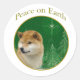 Paz en la Tierra. Muestra tu razón para la temporada con tu Shiba Inu en este diseño único de perro acentuado con verde y oro. Es genial en un adorno, tarjeta de saludo o pegatina.